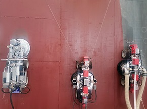 采用爬壁機(jī)器人對船舶進(jìn)行除銹施工,一臺機(jī)器人相當(dāng)于6個工人連續(xù)工作9個小時,有效減少船舶停航時間,機(jī)器人本身強(qiáng)大的附壁行走能力,可攜帶120~200 kg重量靈活移動,并具有一定的曲面越障能力,可以使機(jī)器人輕松應(yīng)對船體凹凸不平表面及曲面,實現(xiàn)對船體、船底、船頭、船舷等位置的除銹清洗作業(yè),確保對船體各個部位的徹底除銹。[查看詳情]