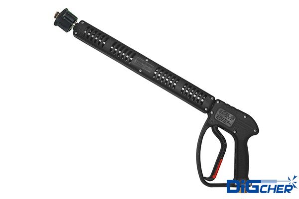 高壓噴槍通過高壓管路總成連接到高壓水泵的輸出端,是高壓清洗機的執(zhí)行兼控制系統(tǒng)。高壓噴槍可以按排放壓力的控制閥形式做進(jìn)一步定義,主要可分為兩種,溢流型和截流型。溢流型高壓水槍的工作原理是在扣動扳機時,槍上的溢流閥關(guān)閉,壓力得以迅速增大從而形成高壓水射流,當(dāng)松開扳機時,槍上的溢流閥打開,水從溢流閥流出,從而釋放壓力。而截流型高壓水槍的工作原理則完全不同,扣動扳機時,壓力增大,當(dāng)松開扳機時,高壓水仍保持在系統(tǒng)中,通過高壓水泵上的溢流閥流出或是循環(huán)利用。