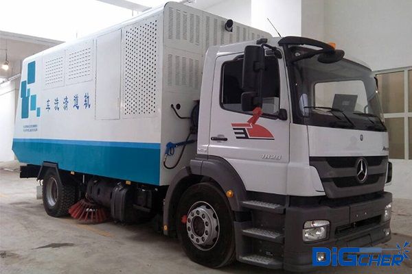第一代德高潔公鐵兩用軌道清潔車是在梅賽德斯-奔馳Axor1829 4×2二類卡車底盤上安裝相關(guān)裝置而構(gòu)成的,而最新一代軌道清洗車選用的是奔馳烏尼莫克U400卡車底盤(如下圖)。